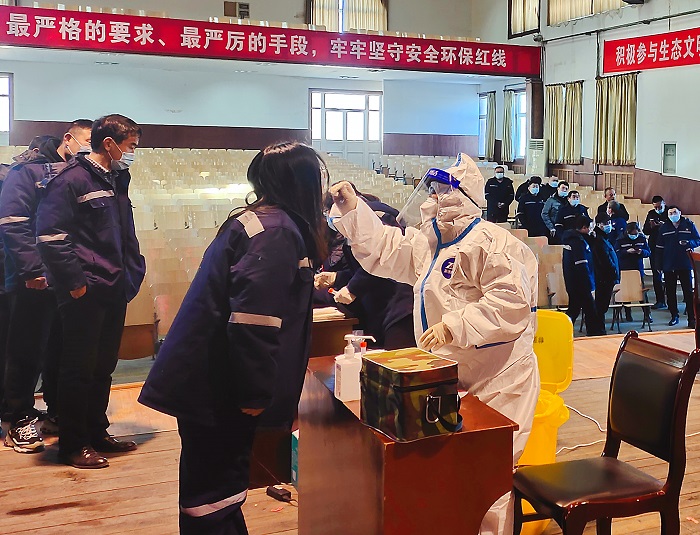 面对严峻复杂的疫情防控形势,为了保障职工安全健康,确保生产经营正常运行,蚕庄金矿实行封闭式管理,统筹谋划,抓细抓实各项防疫措施,筑牢群防群控防线。